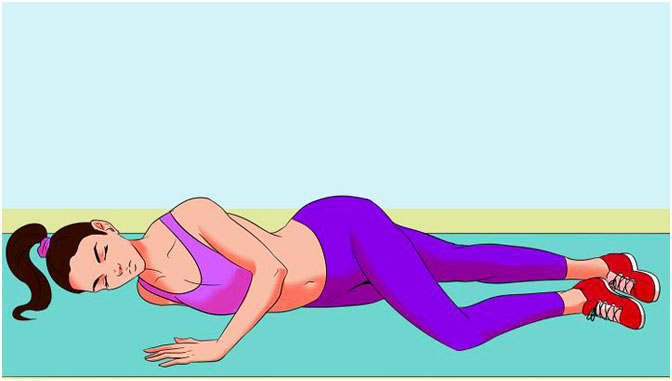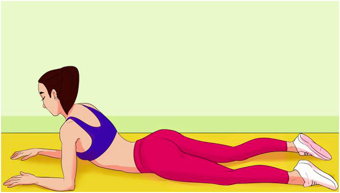 1. Lege dich auf den Bauch und strecke die Beine weit nach hinten.