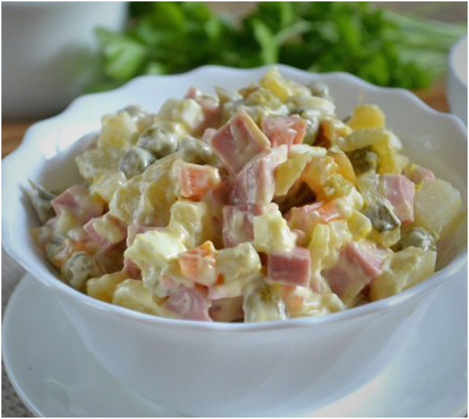 Alle Zutaten werden gemischt und abgeschmeckt. Einige Zeit im Kühlschrank durchziehen lassen.