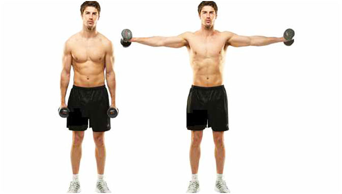 Ausgestattet mit Hanteln in jeder Hand heben Sie die Arme gleichzeitig an und halten sie 30 Sekunden lang hoch. Diese Übung beansprucht den Rücken und die Seiten.