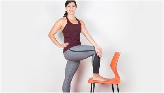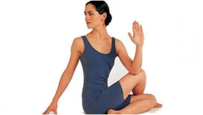 Diese Pose eignet sich hervorragend für Menschen, die nicht optimal beweglich sind und wenig Erfahrung mit fortgeschritteneren Yogastellungen haben. Stellen Sie den linken Fuß auf einen Stuhl, legen Sie die rechte Hand auf das angehobene Knie und stützen Sie die linke Hand auf Ihre Hüfte. Drehen Sie Ihren gesamten Oberkörper so weit wie möglich nach links, ohne Schmerzen zu verursachen, aber lassen Sie die Hüfte nach vorne gerichtet. Halten Sie die Endposition 30 Sekunden lang, lassen Sie dann los und wiederholen Sie die Übung auf der anderen Seite.