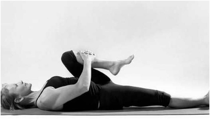 Legen Sie sich auf den Rücken und ziehen Sie ein Knie zur Brust, während Sie das andere Bein gestreckt auf dem Boden ruhen lassen. Drücken Sie es so weit wie möglich gegen die Brust und halten Sie diese Position 30 Sekunden lang. Achten Sie darauf, dass Ihre Schultern fest auf dem Boden stehen.