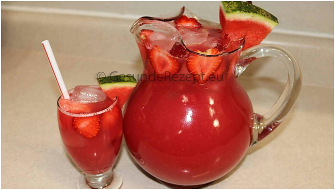 - Zum Schluss die Früchte mit 1er Flasche Mineralwasser und dem Himbeersirup in eine grosse Schüssel geben, gut verrühren und etwa 5 Stunden im Kühlschrank ziehen lassen.