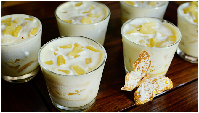 Die abgetropften Ananasstücken unterheben und etwas abkühlen lassen.