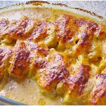 Alles zusammen vermischen. In einem großen Bräter bei 220°C für 2 Std. im Ofen garen.