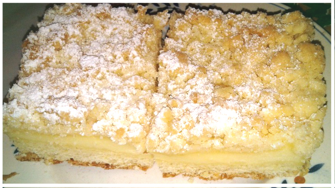 Streuselkuchen mit Pudding gefüllt