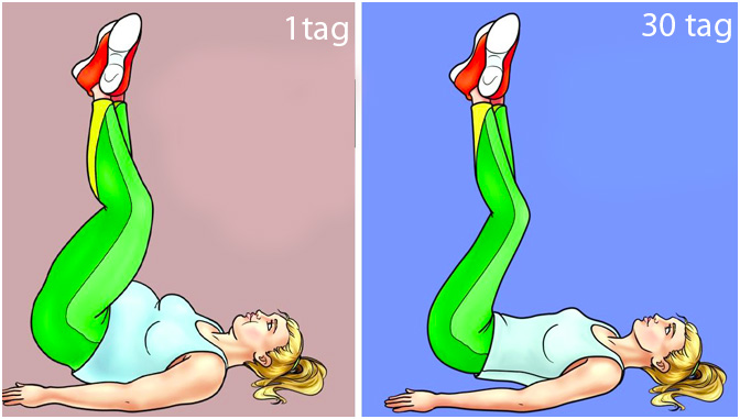 Dies kann auch auf dem Boden durchgeführt werden und dauert nur sehr wenig Zeit. Es ist eine umfassende Übung, die alle Muskeln im Bauchbereich einbezieht und trainiert.