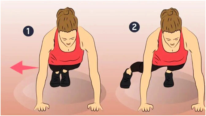 - Beginnen Sie in einer Brettposition, bei der die Hände fest auf dem Boden liegen und die gleiche Achse wie Ihre Schultern bilden. Der Körper sollte vom Kopf bis zu den Füßen eine gerade Linie bilden.