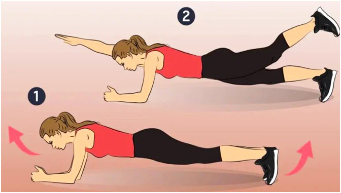 - Wiederholen Sie die gleiche Bewegung mit dem anderen Arm und dem anderen Bein.