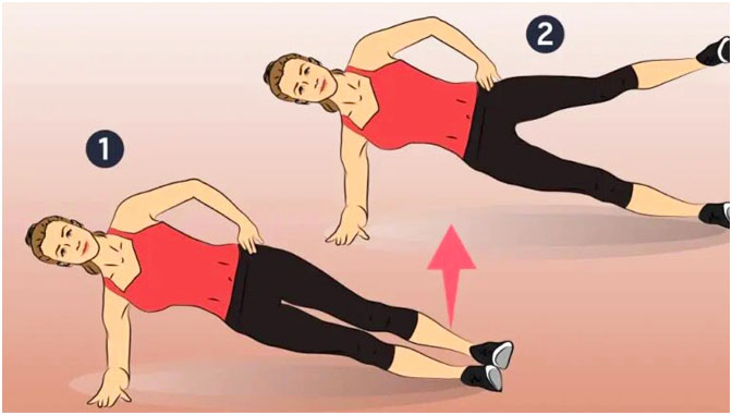 - Décollez votre corps du sol et tenez-vous en équilibre sur votre avant-bras et le côté de votre pied, tout en maintenant votre corps en ligne droite.