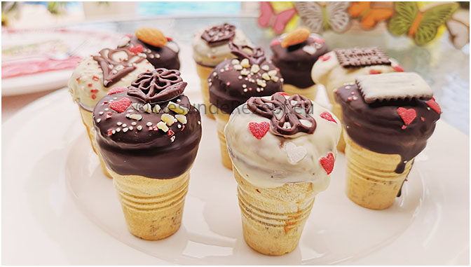 - 24 Waffelbecher (à 90 g) mit kakaohaltiger Fettglasur