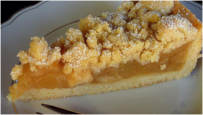 Das Apfelmus auf dem Herd köcheln lassen. Das Puddingpulver mit etwas Milch anrühren und in den Topf geben, etwas Zimt hinzu und die Mischung aufkochen lassen. Geben Sie dann die Mischung auf den Teigboden.