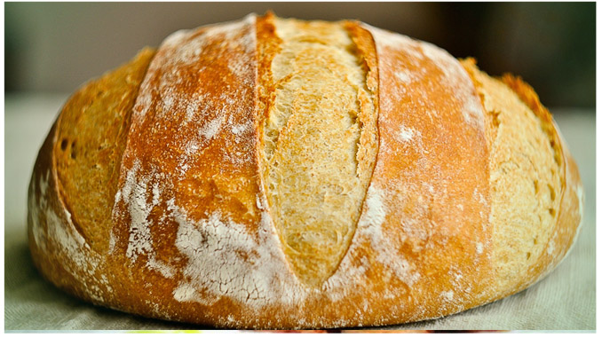 Das Brot wird in den kalten Backofen gestellt und 50 Min.bei 180 °C mit geschlossenem Deckel gebacken. Dann den Deckel entfernen und weitere 7 – 10 Min. bei 220 °C backen. Das fertige Brot auf einem Kuchengitter abkühlen lassen.