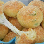 (4) Den Teig rausholen und in 8 etwa 80 g schwere Portionen teilen. Die einzelnen Portionen rund schleifen und dann kurz längs rollen. Auf ein Blech legen, mit einem sauberen Küchentuch abdecken und 30 Minuten gehen lassen. Nach 15 Minuten die Brötchen mit einem scharfen Messer längs einschneiden.
