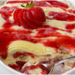 - Danach in einer beliebigen Form (z.B. Auflaufform oder Backform) den Boden mit Butterkeksen auslegen und die Hälfte der Puddingcreme darüber streichen. Auf der Puddingcreme weitere Butterkekse auflegen und diese mit der restlichen Puddingcreme bestreichen.