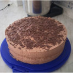 Schmand und 2 Päckchen Vanillezucker verrühren. Sahne unter den Schmand ziehen und die Pfirsichstücke unterheben. Pfirsich-Schmand gleichmäßig auf dem Kuchen verstreichen.