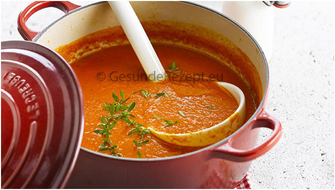 - 6.Suppe fein pürieren und mit Pfeffer bestreuen und restlichem Oregano garnieren. Dazu schmeckt Vollkornbrot.