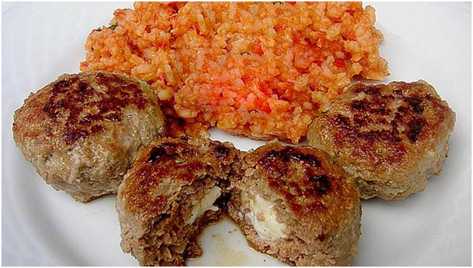 Bällchen mit Tomatenreis servieren.
