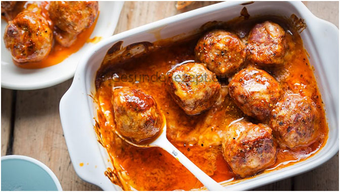 Das Hackfleisch mit Salz und Pfeffer würzen. Evtl. noch Kräuter wie Oregano, Thymian und/oder Basilikum und nach Geschmack Knoblauch dazugeben. 12 – 15 kleine Bällchen formen und in eine Auflaufform legen.