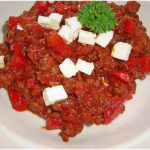 PS: Man kann das Hackfleisch auch in wenig Wasser in einer beschichteten Pfanne andünsten, dass spart Kalorien.