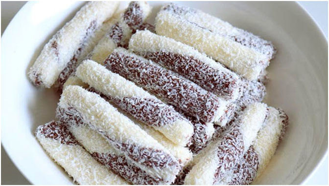 Den fertigen Strang in ca. 5cm lange Stücke bzw. Stangerl schneiden und anschließend in Kokosette wälzen. Die Kokos-Stangerl am besten in einer luftdichten Box, kühl und trocken lagern.
