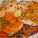 Leberkäse auf ein mit Backpapier ausgelegtes Backblech legen, die Tomatenmischung darauf verteilen und mit jeweils einer halben Scheibe Käse belegen. Im vorgeheizten Backofen bei 150 °C (Umluft oder E-Herd) überbacken, bis der Käse geschmolzen ist (ca. 10 Minuten).