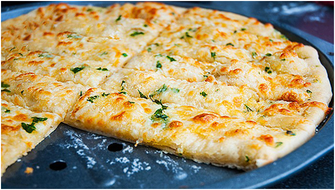 - Mehl und gepressten Knoblauch, Pfeffer und Salz vermischen. Hefe und Zucker mit warmem Wasser verrühren und aufgehen lassen. Danach mit der Mischung zu einem glatten Teig verkneten. Diesen an einem warmen Ort ca. 45 Minuten gehen lassen.
