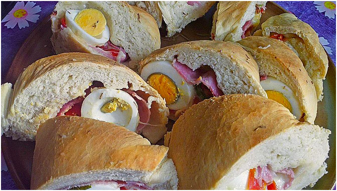 Licher Brotkranz mit Schinken, Mozzarella, Eiern und viel Basilikum würzig gefüllt