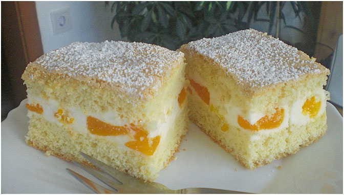 Für den Biskuitteig die Eier und heißes Wasser 1 Minute schaumig schlagen. Zucker mit Vanillinzucker mischen, innerhalb einer Minute einrieseln lassen und weitere 2 Minuten schlagen. Das Mehl mit Backpulver und Speisestärke mischen, zugeben und kurz unterrühren. Den Teig auf ein mit Backpapier ausgelegtes Backblech bzw. Springform streichen.