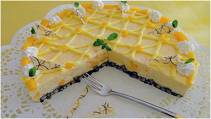 Mango Torte LIGHT mit Schoko-Knusperboden ohne Backen