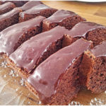 Eier, Zucker und Kakao verrühren. Dann Margarine schmelzen lassen und dazugeben. Anschließend Schmand, Mehl und Backpulver dazugeben. Nun alles zu einem glatten Teig verrühren. Teig auf 2 Bleche verteilen. Bei 180°C ca. 15 Minuten backen.