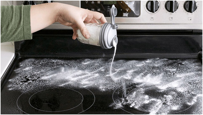 Entferne die groben Verunreinigungen mit Spülmittel und einem feuchten Lappen. Festgebrannte Essensreste können auch mit einem Ceranfeldschaber entfernt werden. Presse den Saft der Zitrone aus und vermische ihn mit dem Backpulver. Achtung das schäumt ein wenig. Diese Paste kannst du nun mit der ausgepressten Zitronenhälfte auf dem schmutzigen Ceranfeld verteilen. Je nach Grad der Verschmutzung einwirken lassen und mit einem feuchten Lappen abwischen. Der Schmutz lässt sich nun ganz einfach lösen!
