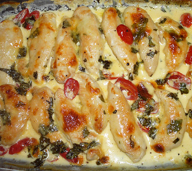Mozzarella-Hähnchen in Basilikum-Sahnesauce