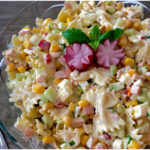 5. Den fertigen Nudelsalat ein wenig durchziehen lassen und gut gekühlt servieren.
