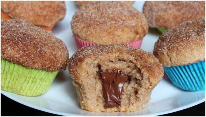 Für die Dekoration die Butter zum Schmelzen bringen und eine Schale mit dem Zucker-Zimt-Gemisch bereitstellen. Dann die Muffinoberfläche kurz in die Butter tauchen und anschließend in dem Zucker wälzen. Die Masse ergibt ca. 12-14 Muffins, je nachdem wie groß die Papierförmchen sind.