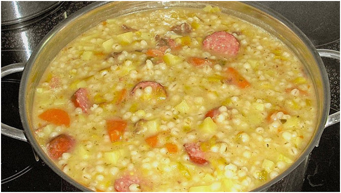 Die Graupen kalt aufsetzen und ankochen, dann einmal wieder abschütten, damit die Suppe nicht schleimig wird. In leicht gesalzenem Wasser garen.