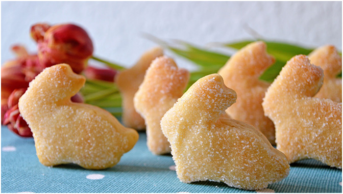 Den Teig danach auf eine bemehlte Fläche ausrollen. Hasen ca. in einer Höhe von 1cm ausstechen. Danach auf mit Backpapier ausgelegten Backblech für ca. 15 Min im Ofen backen. Danach gleich noch warm mit der zerlaufenden Butter bestreichen und mit Zucker bestreuen.