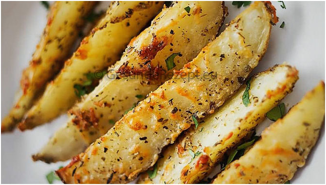 Die Kartoffeln in Spalten schneiden und in einer Schüssel mit Parmesan und Olivenöl vermischen. Die Gewürze in einer separaten Schüssel vermengen und dann zu den Kartoffeln geben. Noch einmal kräftig durchmischen, die Kartoffelecken dann auf einem mit Backpapier ausgelegten Backblech verteilen und bei 200 °C Ober-/Unterhitze für ca. 40 Minuten backen.Hinweis: Heißhunger auf eine deftige Beilage oder einfach nur Appetit auf einen leckeren Snack? Diese Kartoffelecken sind genau das richtige für alle, die es gerne deftig mögen und etwas Neues ausprobieren wollen. Dazu schmeckt Sour Cream mit ein paar frischen Kräutern wirklich köstlich, alternativ könnt ihr die Wedges natürlich auch als Beilage zu einem leckeren Steak oder gebratenem Fisch servieren. Eurer Kreativität sind keine Grenzen gesetzt.