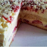 Sauce: Miracel-Whip und Joghurt in die geschlagene Sahne geben, vorsichtig unterheben mit Salz, Pfeffer und Knoblauch abschmecken. Zur Torte reichen.