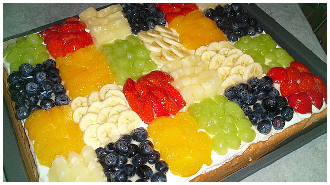 Jedes Quadrat mit einer anderen Obstsorte belegen.