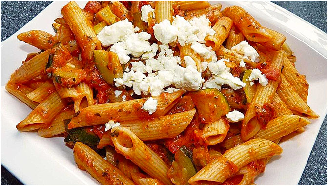 Die Penne (oder Rigatoni) nach Packungsanleitung im Salzwasser zubereiten. Die Soße über die Nudeln geben, gut vermischen und servieren.