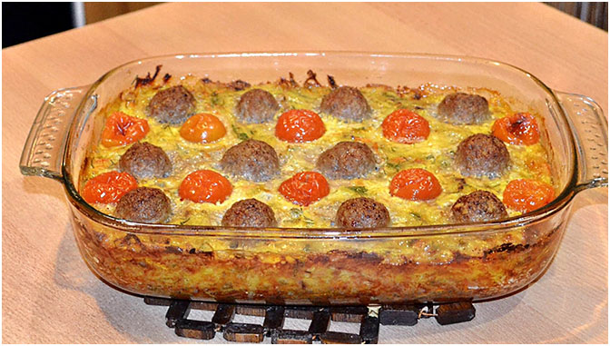 Reisauflauf mit Hackbällchen und Erdnüssen