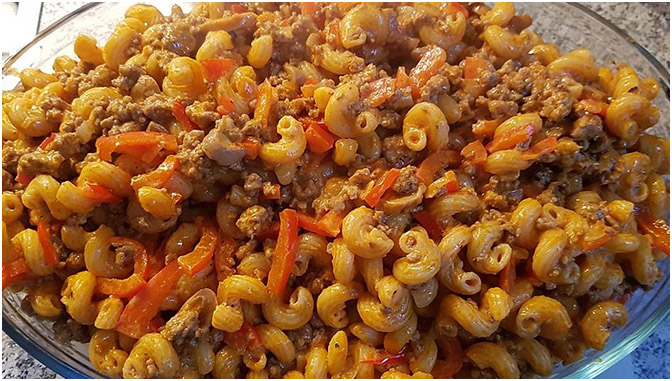 Hackfleisch mit Zwiebeln anbraten und würzen. Tomatenmark und Senf dazugeben und mit Brühe ablöschen. Schmand unterrühren. Evtl. mit Parmesankäse etwas binden. Paprikastreifen und abgetropfte Champignons dazugeben und etwas köcheln lassen.