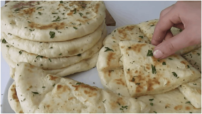 Mehl in eine große Schüssel sieben, Salz, Backpulver, Öl und kaltes Wasser hinzufügen und alles zu einem glatten Teig kneten. Davon kleine Stücke abzupfen und zu Fladen ausrollen.