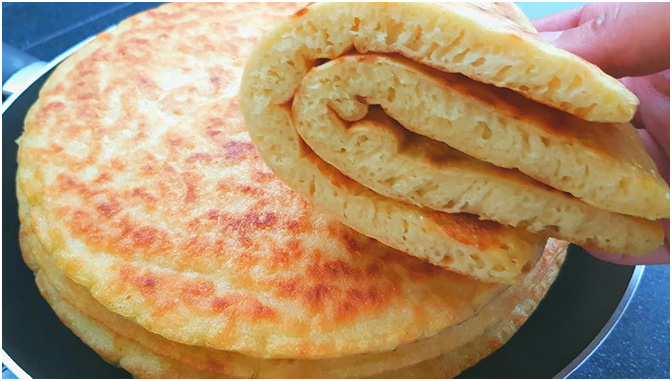 Teig in 4 gleichgroße Stücke teilen und auf bemehlter Arbeitsfläche dünn ausrollen. Etwas Öl in einer Pfanne erhitzen und das Pfannenbrot von jeder Seite 1 bis 2 Minuten braten. Wenn sich Teigblasen bilden, ist es Zeit, das Brot zu wenden.