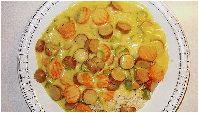 TIPPS: statt der Gemüsebrühe kann man 300 ml Würstchenwasser und 1 gehäuften TL Gemüsebrühe-Pulver verwenden, man muss dann kaum noch würzen.