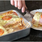 - Auflaufform mit Alufolie abdecken und für 30 Minuten im Ofen backen. Alufolie entfernen und den Spaghetti-Auflauf für weitere 10-15 Minuten weitergaren, bis der Käse sich goldbraun färbt. Aus dem Ofen nehmen und 5 Minuten auskühlen lassen. Mit frischer Petersilie garnieren, in Stücke schneiden und servieren.