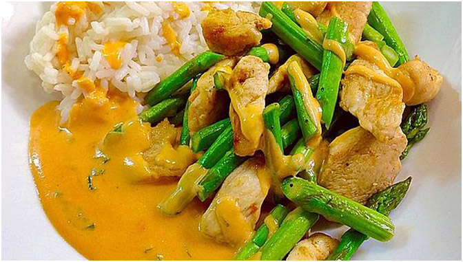 Während der Spargel kocht, das in (nicht zu dünne) Scheiben geschnittene Fleisch in der heißen Pfanne in wenig Öl auf beiden Seiten schön braun braten, salzen und pfeffern und evtl. im Backofen kurz warm stellen. Überschüssiges Öl aus der Pfanne abgießen und Bratensatz mit Schlagobers oder dgl. ablöschen, Tomatenmark einrühren und mit Milch und Spargelwasser aufgießen. Getrocknetes Basilikum, in Stückchen gebrochenen Eckerlschmelzkäse und Schmelzkäsescheiben dazugeben und unter Rühren aufkochen und den Käse schmelzen lassen. Soße etwas einkochen lassen und mit Salz und Pfeffer abschmecken.