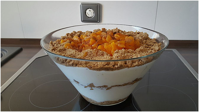 Nun die Quark-Sahne-Masse abwechselnd mit den Mandarinen sowie den Spekulatiusbröseln in Gläser schichten. Der Nachtisch ist weihnachtlich und fruchtig.