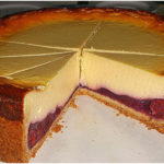 Die Quarkmasse in eine gefettete, mit Bröseln ausgestreute, Backform füllen und im vorgeheizten Ofen bei ca. 180 Grad 60-70 min backen, ohne die Backofentüre zu öffnen, den Kuchen im Ofen erkalten lassen.