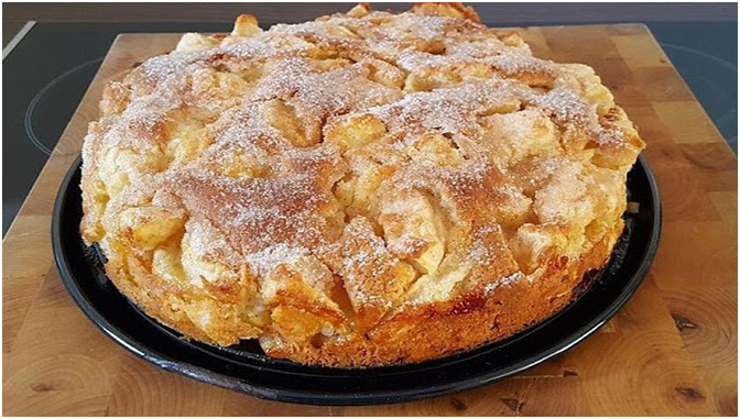Lecker, super saftig und passt super zu Schlagsahne. Es scheint zwar, dass es zu viele Äpfel sind im Verhältnis zum Teig, aber keine Angst. Der Teig sucht sich seinen Weg durch die Äpfel und dient eigentlich nur als zusammenhaltende Form für die Äpfel.